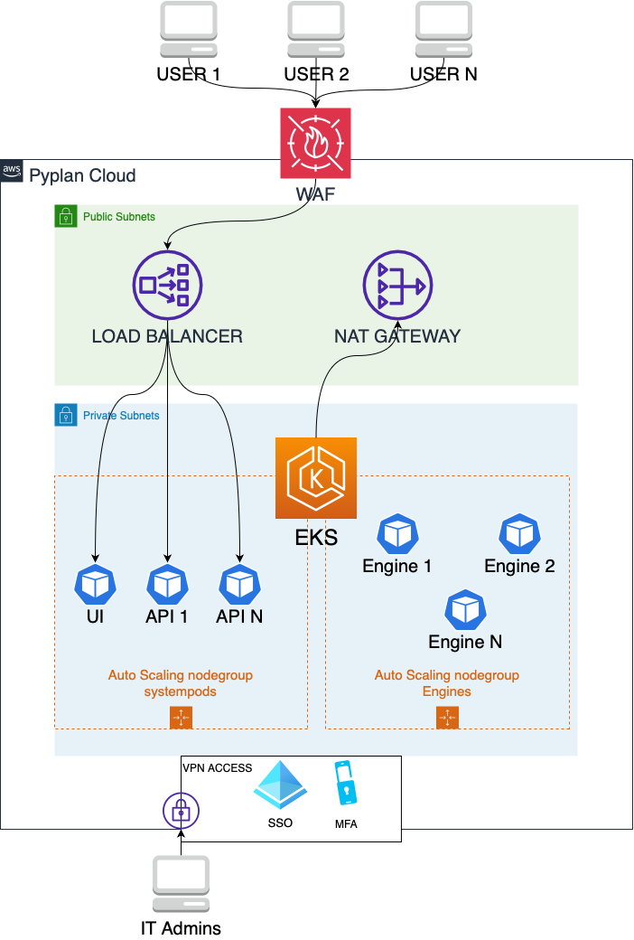 In order to ensure a strong, secure foundation, Pyplan Cloud shares security responsibilities with an industry leading cloud infrastructure vendor and valued partner. These cloud computing services are used by Pyplan for internal purposes as well as Pyplan clients for their own cloud deployments.