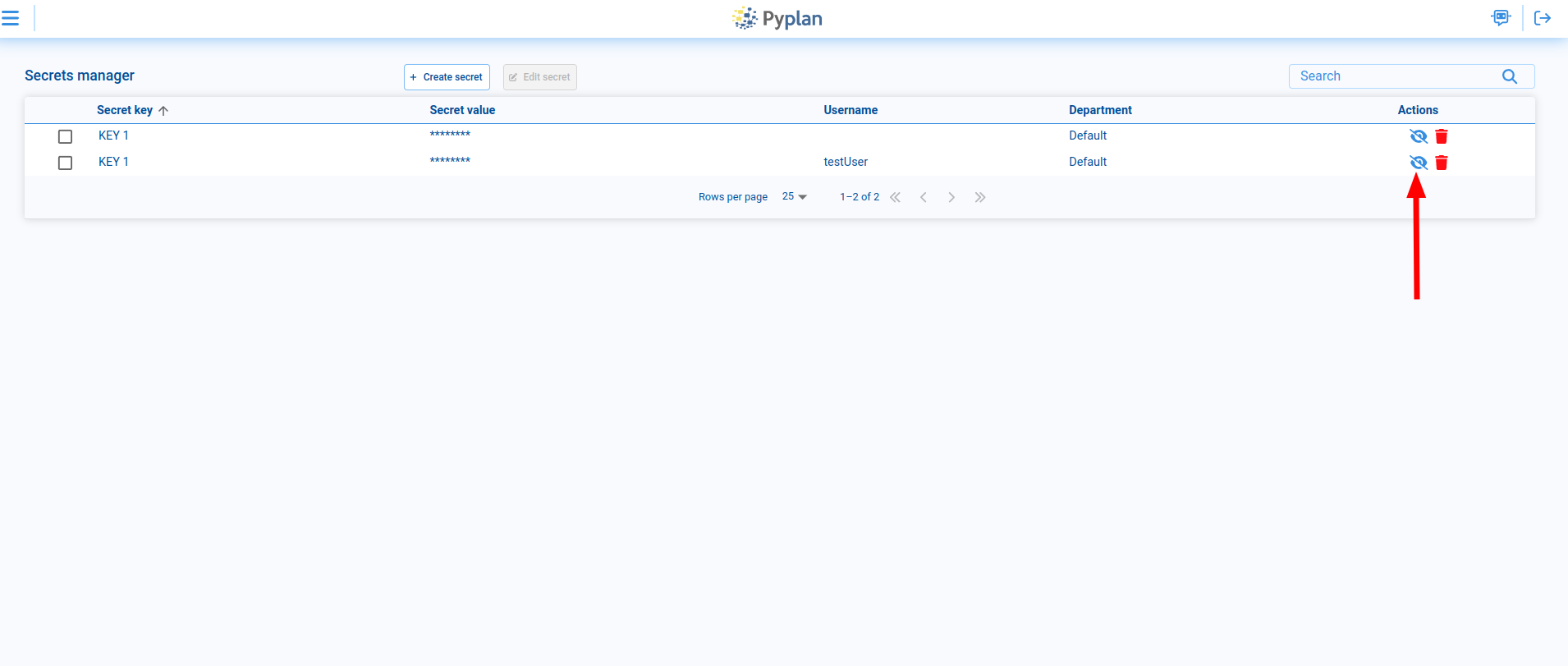 Note: Only users who meet the specified Department and/or User criteria will be able to access the secret value. This ensures that sensitive information is securely restricted to authorized users within Pyplan.
